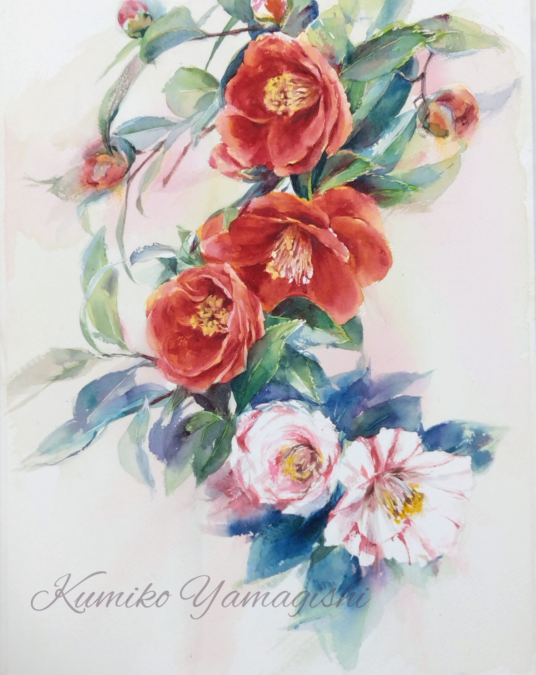 〈山茶花〉F6 ウォーターフォード 水彩画
