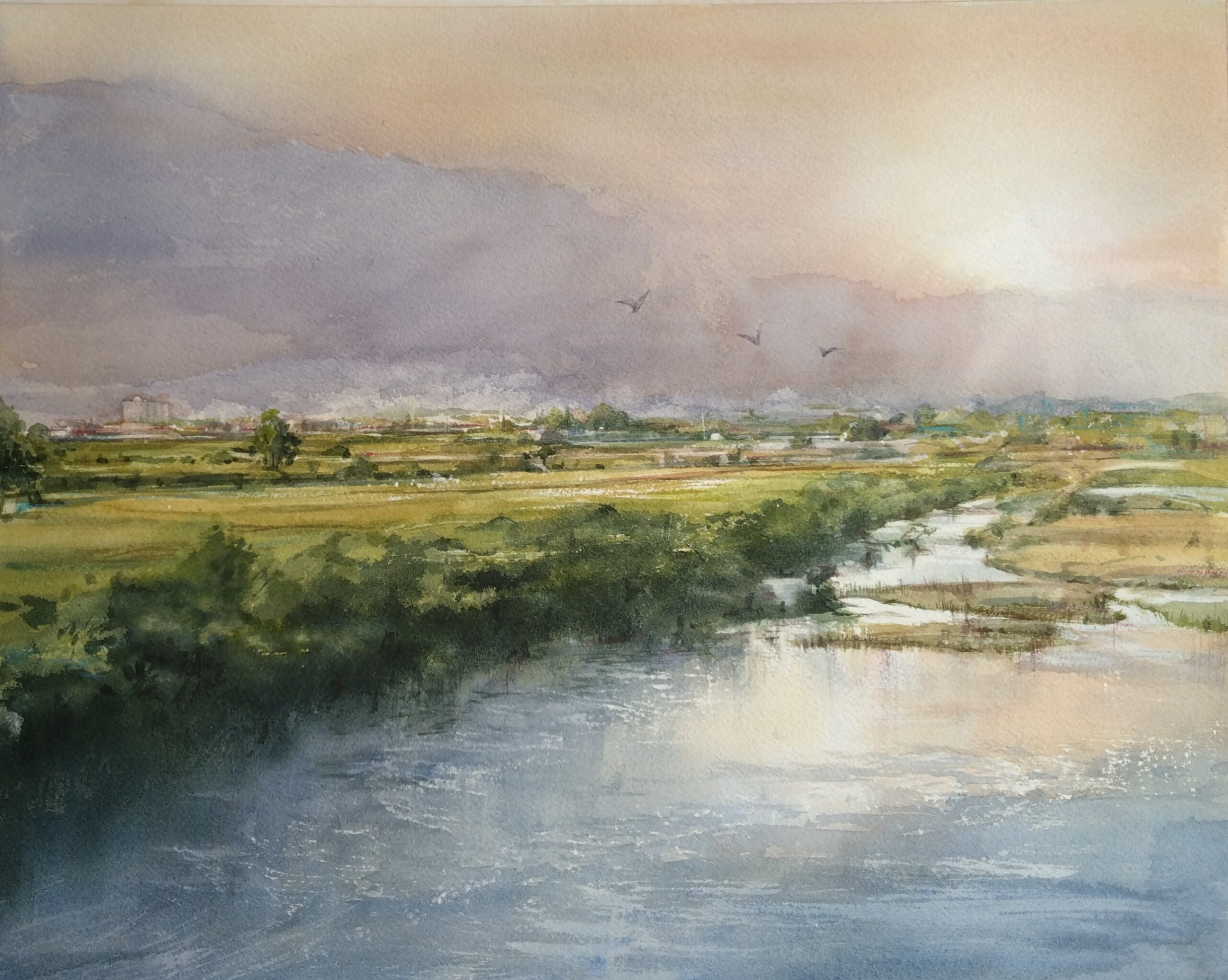 〈夕暮れ時〉F8 アルシュ 水彩画