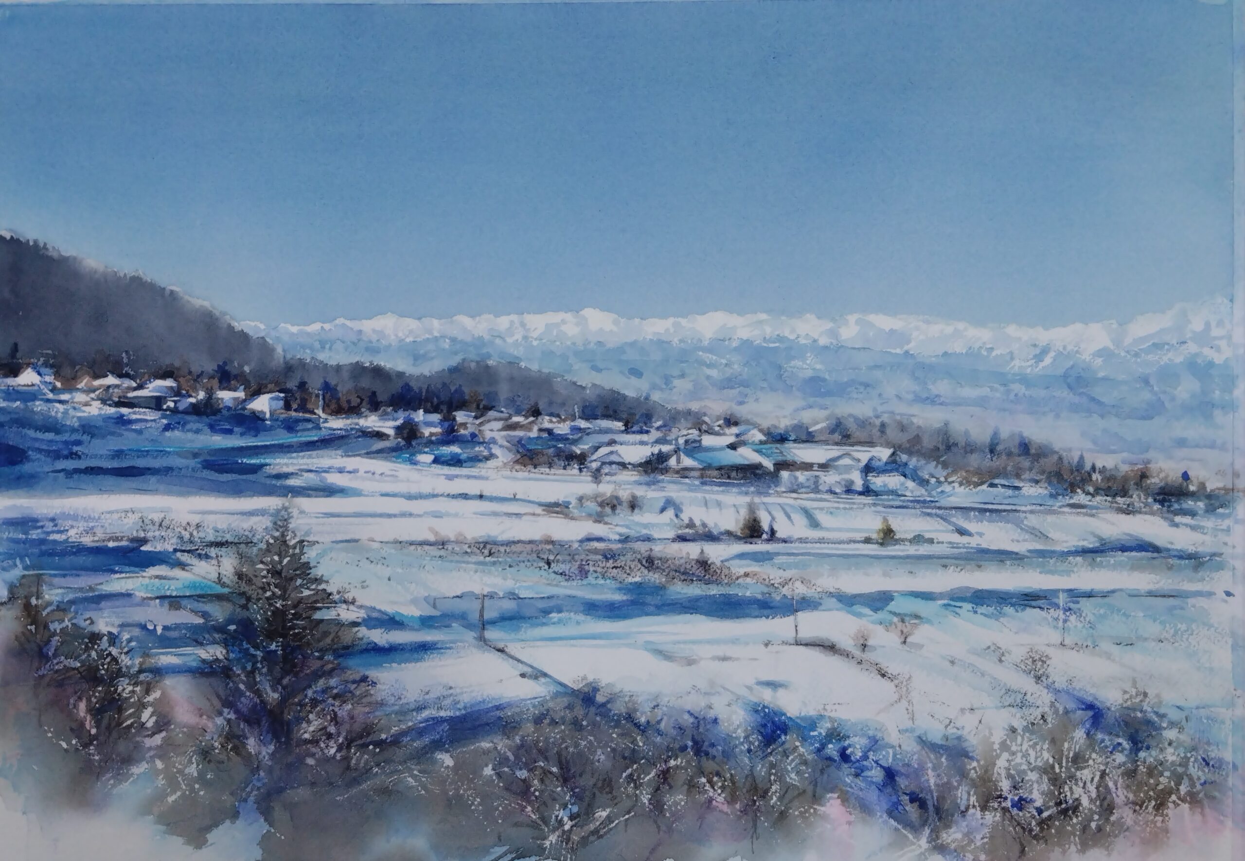 〈北アルプスをのぞむ〉38×56 アルシュ 水彩画